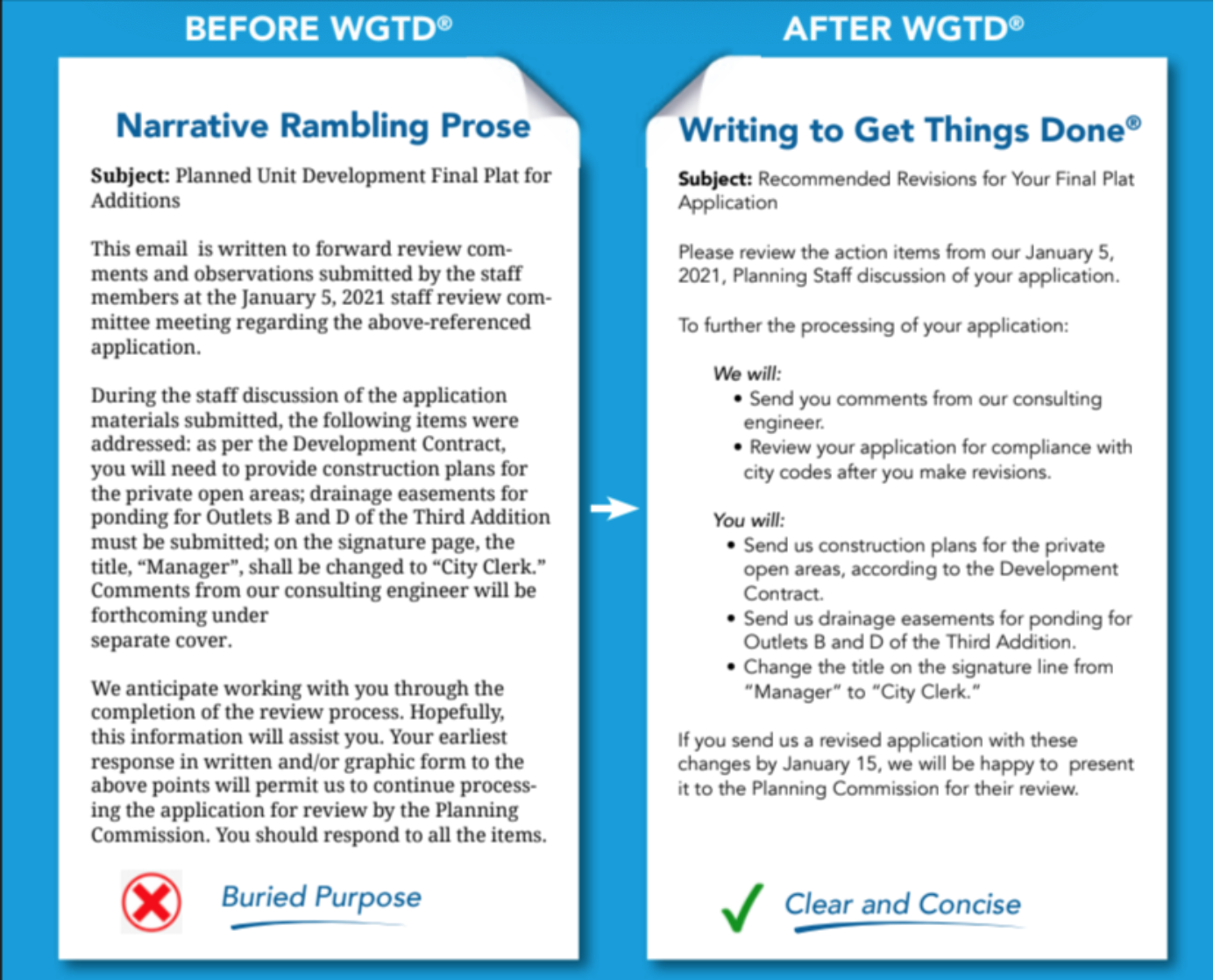 Our proven business writing training helps organizations—from Fortune 500 companies to the U.S. Navy—turn confusing communication into clear, effective messages that help teams get things done.